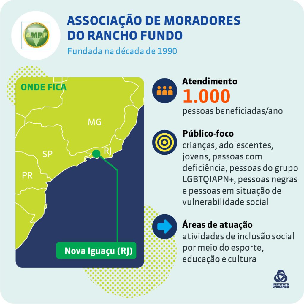 Em Nova Iguaçu (RJ), no bairro Rancho Fundo, foi fundada a Associação de Moradores, na década de 1990, com o objetivo de reivindicar serviços públicos para a população local e ofertar atividades de formação e de inclusão social para crianças e adolescentes. Atualmente, suas atividades também atendem às famílias por meio da educação, da cultura e do esporte, além de palestras para promover o resgate da vida, da dignidade e da cidadania em um contexto de vulnerabilidade social.