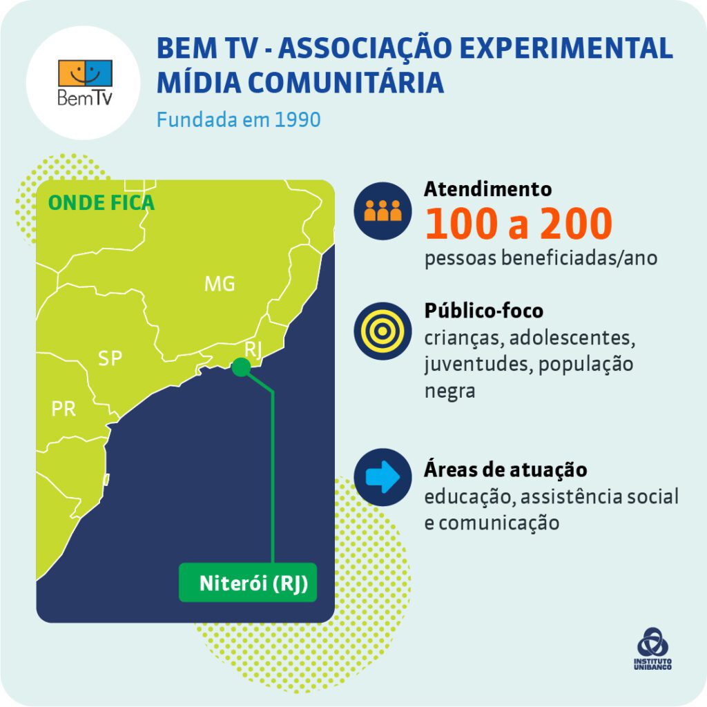 Ao lado de outras organizações, que formam a Rede Niterói Cidade Educadora, a Bem TV está construindo um diagnóstico da situação educacional do município. Para isso, atua pelo desenvolvimento comunitário, fazendo a articulação com igrejas, escolas de samba, postos de saúde, dentre outras instituições locais. Esta e outras iniciativas atendem ao propósito do programa do Instituto Unibanco em fortalecer as organizações para que qualifiquem a área da educação dos territórios.