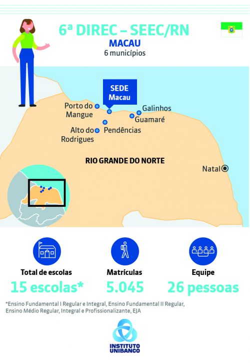 Para implementação do ensino remoto, a 6ª Direc, de Macau (RN), realizou um primeiro encontro com todas as escolas com orientações gerais sobre questões administrativas, financeiras, pedagógicas e sociais (como a distribuição de merenda e de máscaras para os estudantes mais vulneráveis). “Quando nos reunimos todos, percebemos que cada escola tem suas especificidades e uma reunião só não ia dar conta de resolver tudo”. Foram então organizadas reuniões individuais com a gestão das escolas e na sequência, com o corpo docente de cada uma das unidades.