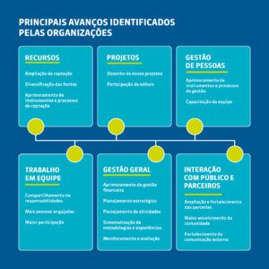 No ano passado, uma avaliação para aferir os resultados do PDI das organizações detectou significativos avanços em gestão estratégica, governança, gestão de pessoas, incidência em políticas públicas, redes e alianças, planejamento de projetos e programas, monitoramento, avaliação e aprendizagem, captação de recursos e gestão administrativa e financeira.